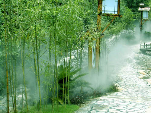 在景观造雾领域中,人工造雾体现着人类文化与自然的融合,满足了人们期待回归自然的愿望和对美的追求。此外它所产生的雾气可随风飘移,与自然环境融为一体,更具观赏性与趣味性,作为一种可制造出特殊云雾的造雾设备。在自然园林,广泛应用在环境景观方面,如景区,广场,公园,绿化工程,假山水池,连廊,休息亭,室内外餐厅等各领域当微风拂过,雾形上下腾涌,雾浓似云海般飘渺,云起云聚,雾淡如轻纱抚面,温和柔美。人们不仅可以在远处观赏,体会那若稳若现的神秘之感,更可置身于的茫茫雾海中,呼吸其湿润新鲜的空气,神奇之处令人意趣无穷。