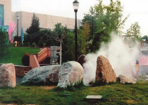 它可使您如临深山,回归自然,如入仙境,提高人文及自然景观的造景效果显著,起画龙点睛之笔。景观雾化能极大的增加空气中负氧离子的含量,无蚊蝇叮扰,极大地营造和改进人类生存和居住环境。