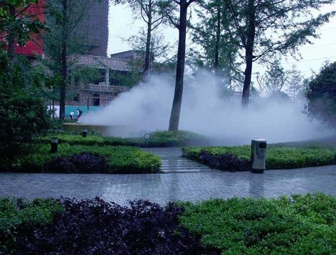 主机是整个喷雾系统的心脏,高压装置对水进行加压,水处理装置对水经行过滤净化,反冲洗装置则对水处理装置进行净化清洁处理,控制系统装置则对系统每一个工作环节进行整体调控。 喷雾主机的控制装置采用进口编程系统,内设时间和程序控制,可根据用户的需求,对其进行工作运转周期的设定,其变化极其丰富,可在事先设定的程序指挥实现系统的自动切换、雾形自动组合等。减少人工操作和维护,真正实现无人值守。 喷雾系统的主机还具有自动检测及故障自动排除功能,该装置功能齐全,集监控、管理保护为一体,自动化程度高、性价比高、可靠性高。对投入运行的设备进行状态监控,并进行实时数据管理、故障显示。为便于维修,RL喷雾系统具备自动检测与故障定位功能,检测信号进入计算机网,由计算机自动控制流程启、停及根据设备故障信号进行报警。 作为造景应用的喷雾因其雾化颗粒微小,有可能被参与者吸入人体,而天然水源在不同程度上都含有杂质,甚至是一些有害物质,当其着雾化颗粒进入呼吸系统时,必然有损于人体健康,天然水源中的某些杂质也也会对设备的正常运行造成影响,所以我们必须对水进行净化处理。使原本含有多种杂质的天然水变为喷雾所需要的环保型专业用水。 喷雾主机里采用先进的水处理装置清除水中高达99%的氯和水溶铅、汞、镍、铬及其他可溶性金属。对控制细菌、真菌、污垢、藻类的滋生效果显著。延长系统寿命,降低总体运行费用。 景观人造雾系统,就是以自然的发生方式,通过高压系统,促进水的运动,再通过高压作用,使带电的微小水滴分裂为带负电的水滴表层和带正电的内层,带负电的水滴表层和空气中的原子或分子结合,即形成负离子;较重的水滴内层则在重力作用下下沉,因而可以在空气中获得大量的负离子, 形成颇似自然雾气的白色水雾,犹如“雾的森林。雾森系统|人工造雾设备|冷雾设备这是一种新技术高科技产品。易绿人造雾它以改善空气质量,美化环境为依托,以景观、保湿、防尘、降温、造景为目的,在自然园林、环境景观等方面应用广泛。