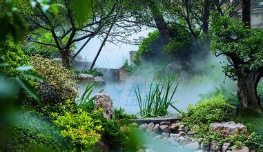 喷雾(雾森)系统喷洒出的雾粒接近自然雾气的效果,模拟了自然的云雾状态,满足了人们对回归自然的渴望,而且雾气的大小范围也可以有效地控制,与周围自然元素的融合,使园林景观在原有的美丽之上,又多添一份朦胧与秀丽,把人文景观表现得淋漓尽致,给人亦真亦幻的感觉。